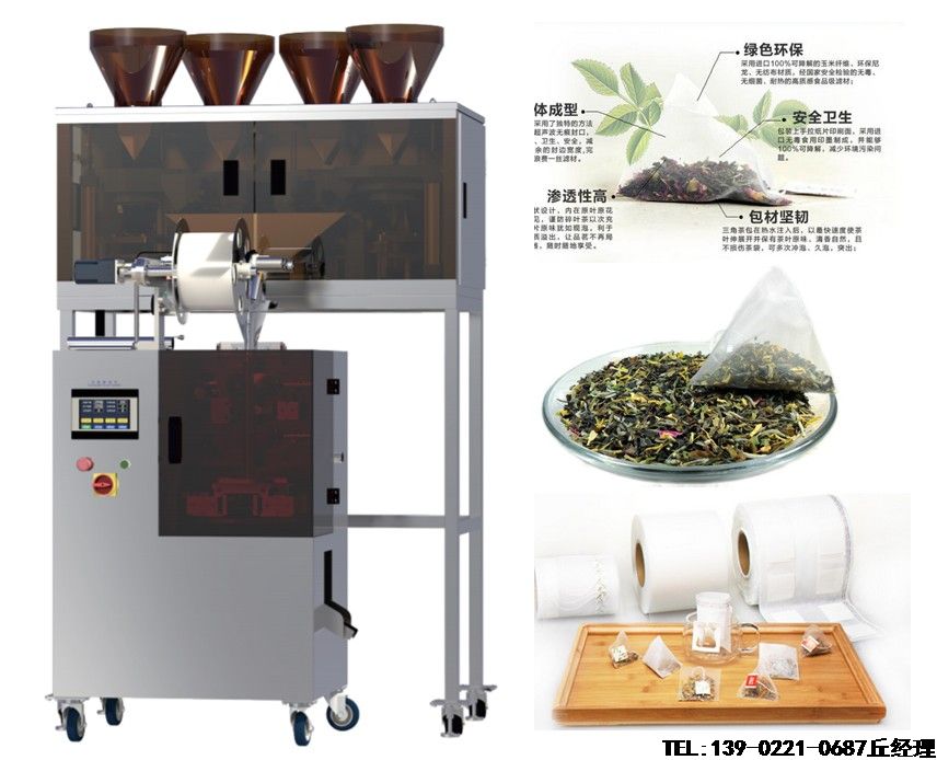 三角茶包全自动包装机,立体三角包茶叶包装机,三角袋茶叶包装机,三角袋泡茶包装机,三角茶包自动包装机 Nylon triangle tea bag packaging machine, nylon package triangle tea bag packing machine, triangle tea bag packaging machine automatically